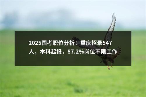 【2025国考职位分析:重庆招录547人,本科起报,87.2%岗位不限工作经验】相关岗位: