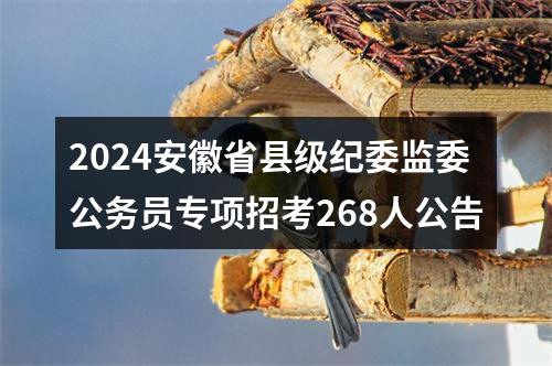 根据公务员法、监察官法和《公务员录用规定》等法律法规,安徽省公务员局决定组织实施全省2024年县级纪委监委公务员专项招考工作。全省共计划招录公务员268名。现将有关事项公告如下: