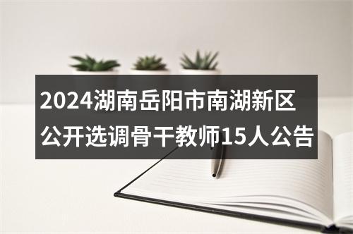 此次公开选调中小学教师15名,具体招聘岗位、计划及要求见《岳阳市南湖新区2024年公开选调骨干教师岗位表》(附件1)。