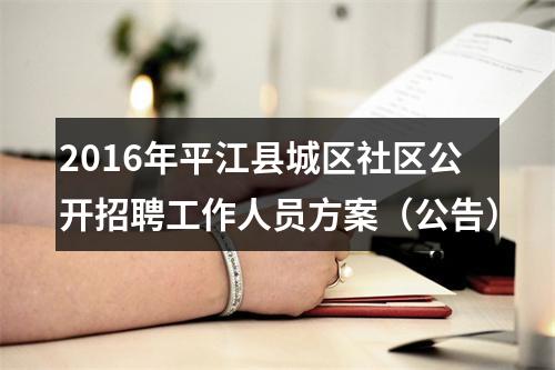 为确保我县城区社区工作的正常开展,经县城区社区工作领导小组同意,决定组织实施2016年平江县城区社区公开招聘工作人员工作。现将有关事项公告如下:一、招聘原则