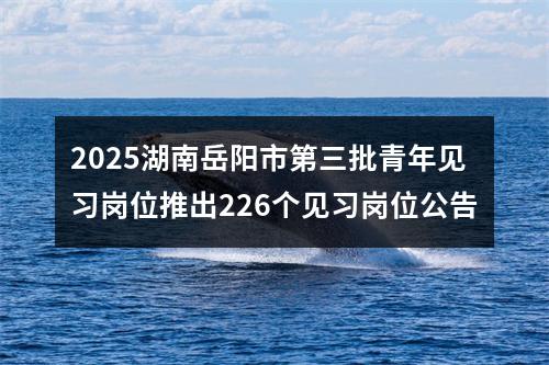 声明:专注 2025湖南岳阳市第三批青年见习岗位推出226个见习岗位公告 相关岗位分析;专业指导面试技巧;保障就业成功概率。